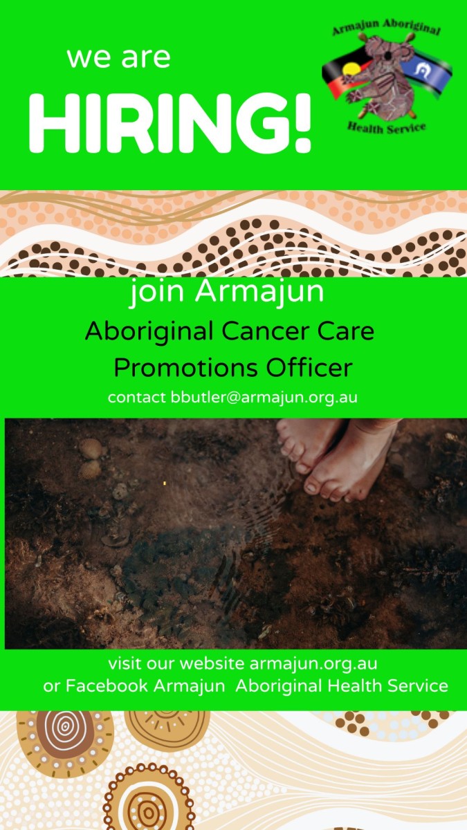 Armajun Aboriginal Health Services is an equal opportunity employer and encourages Aboriginal and Torres Strait Islander people to apply.